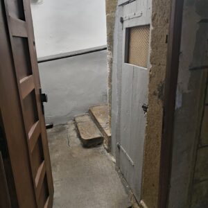 The building itself was very old. I knew to expect that, but coming from Florida where everything is new and air‑conditioned and perfectly painted, it was still a bit of a shock. The staircase to the second floor was tucked away behind a door in a narrow side hallway. The stairs were steep — very steep — and carrying two heavy suitcases up them was absolutely not fun.